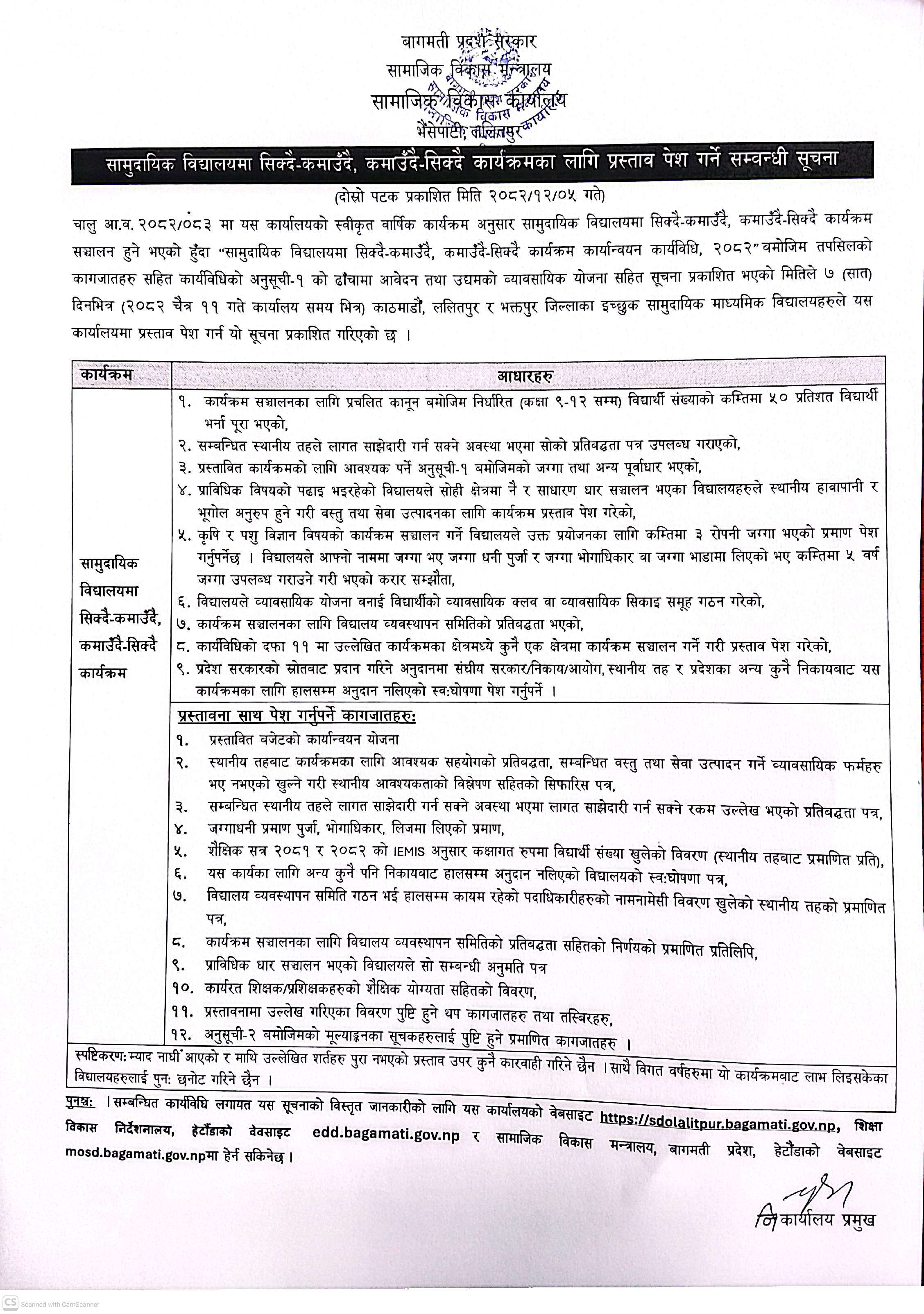 S.D.O ललितपुरको सामुदायिक माध्यमिक विद्यालयमा सिक्दै कमाउँदै, कमाउँदै सिक्दै कार्यक्रमका लागि प्रस्ताव पेशको सूचना ।